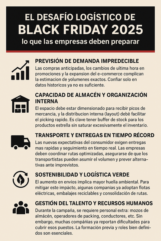 El Black Friday 2025 se perfila como un momento clave para el comercio digital, pero también un verdadero reto para la cadena de suministro. Las empresas que logren anticiparse en logística tendrán ventaja competitiva frente a aquellas que improvisen bajo presión.